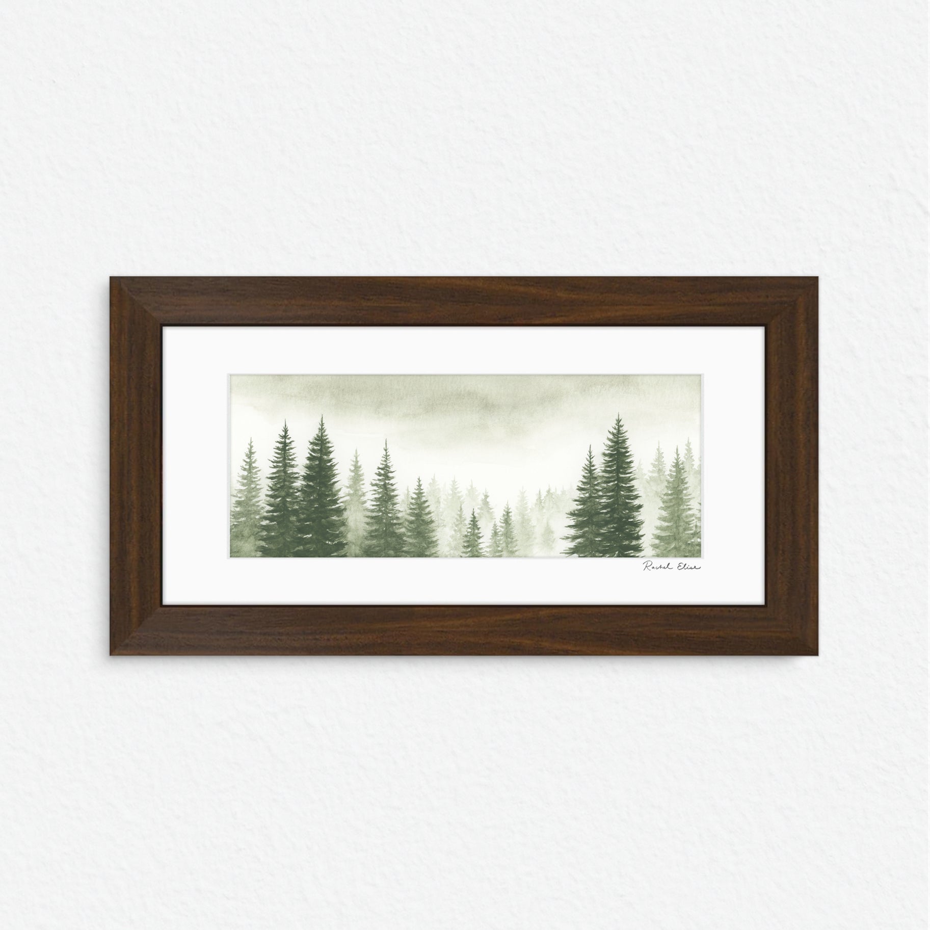 This sage green foggy pine tree forest art piece was created using watercolor. Inspired by the Pacific Northwest.