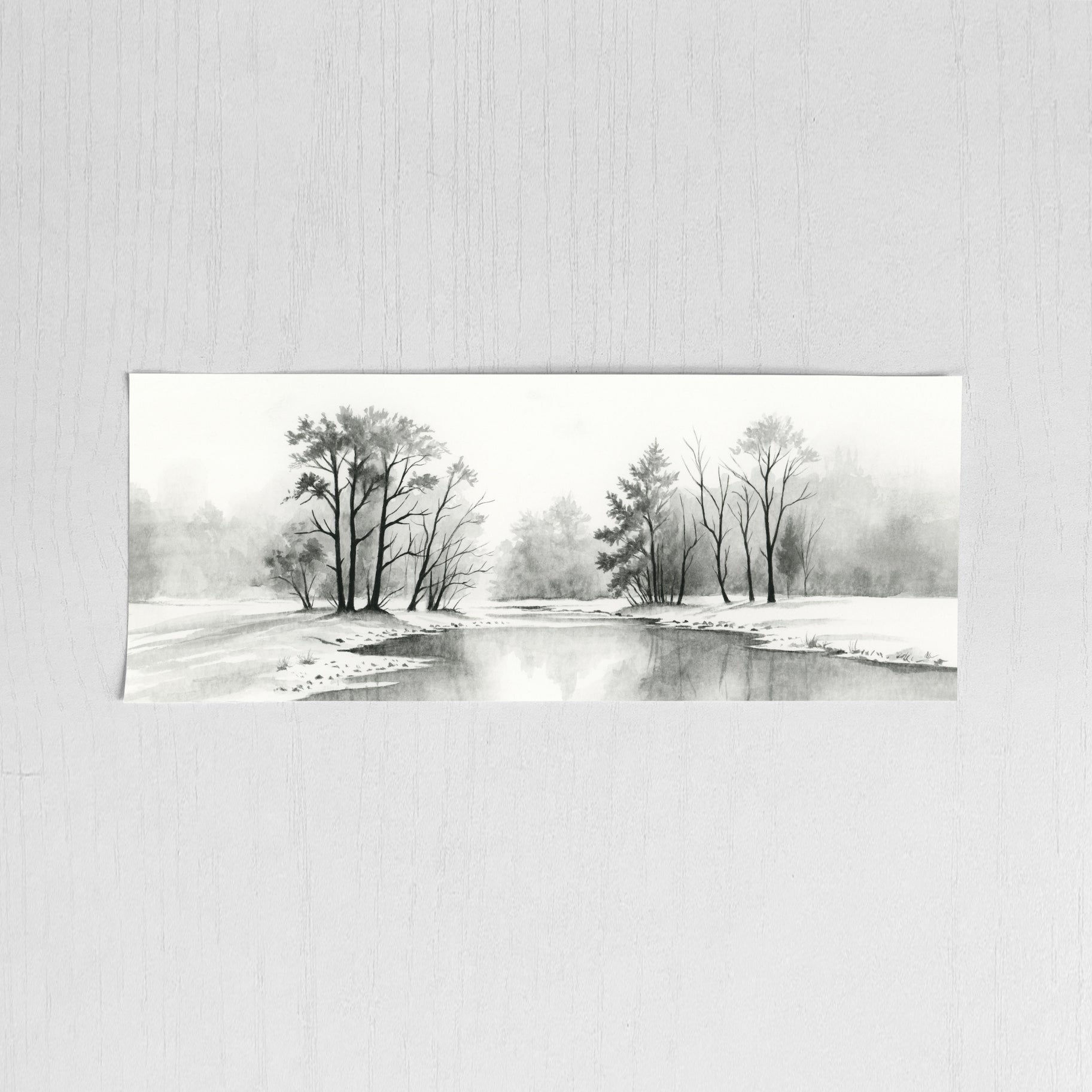 This black and white river and trees art piece was created using watercolor. Inspired by walks in the winter.